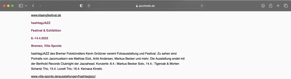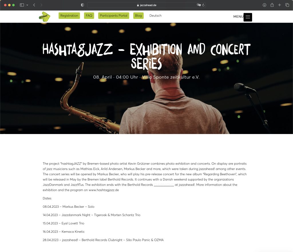 hashtagJAZZ is a photo-project which i started in 2019 and was part of jazzahead 2022 as an exhibtion. the project developed to an exhibition in combination with my own jazz festival in 2023. the first edition of the festival is focused on danish jazz.